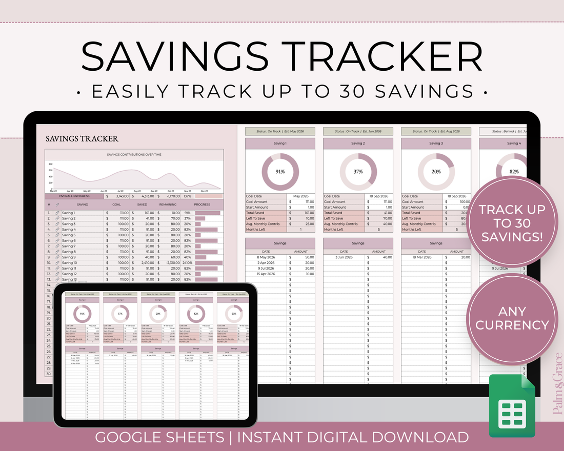Vendor:Savings Tracker Google Sheets Spreadsheet TemplatePalm & Grace- Regular price