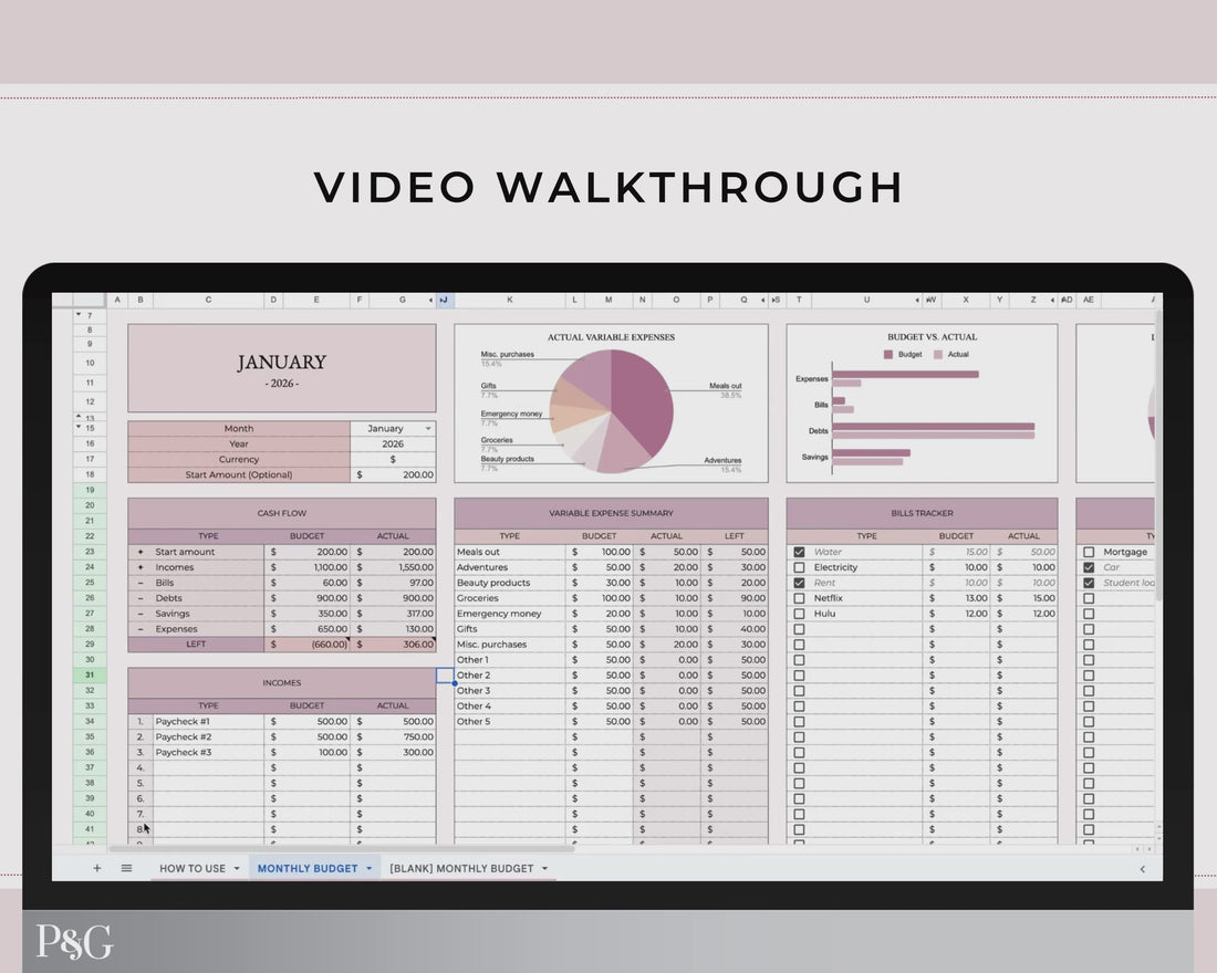 Monthly Budget Spreadsheet Template for Google Sheets