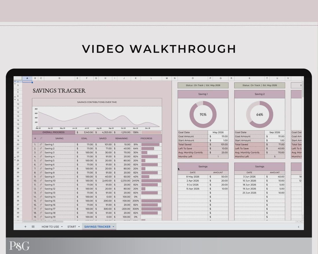 Savings Tracker Google Sheets Spreadsheet Template