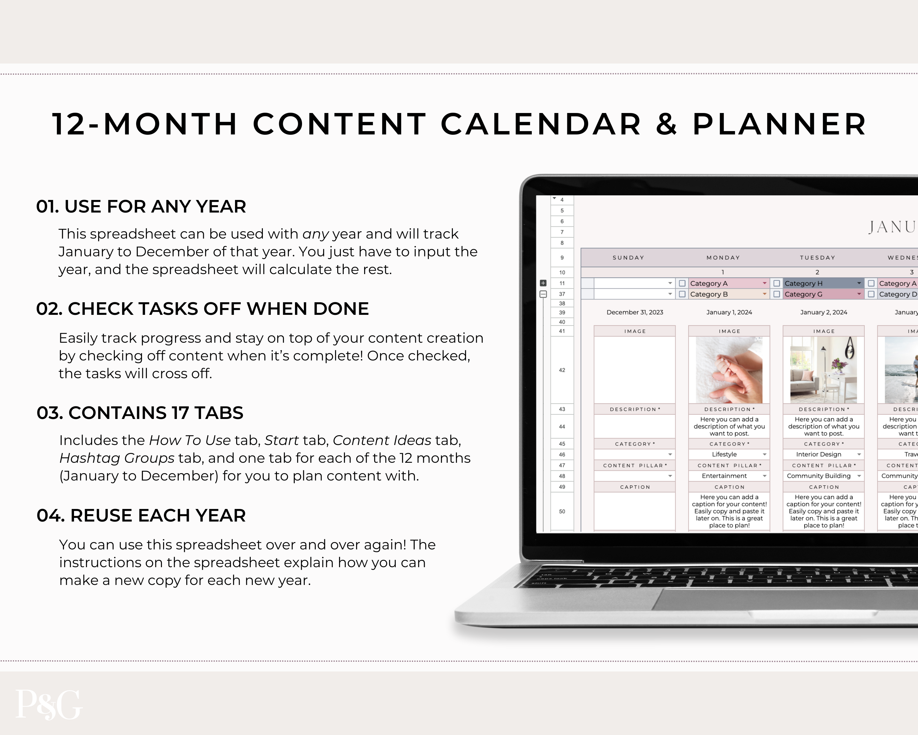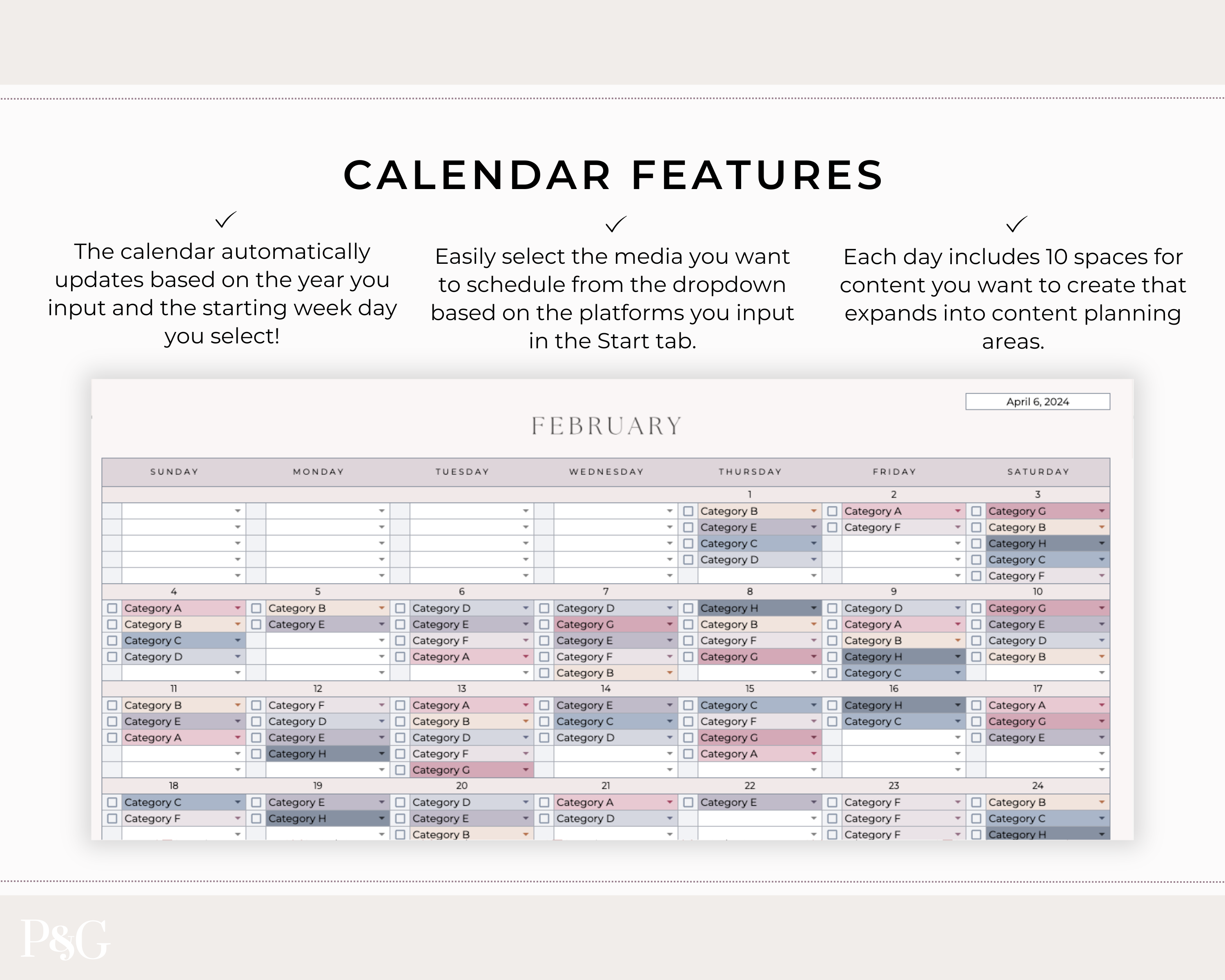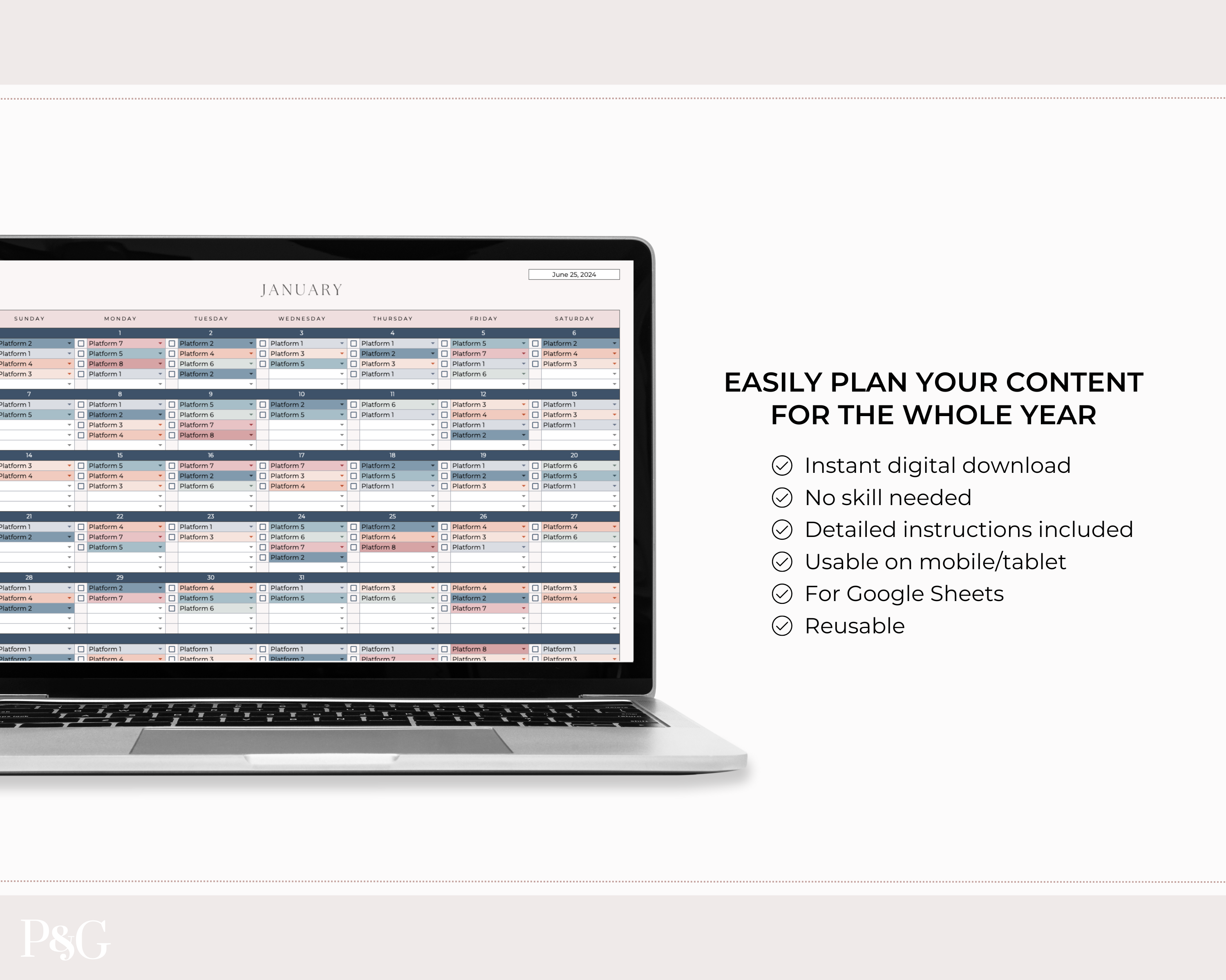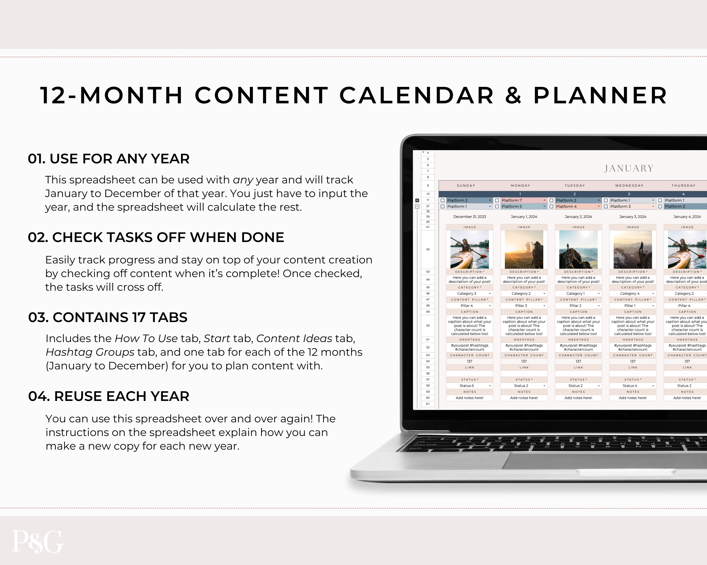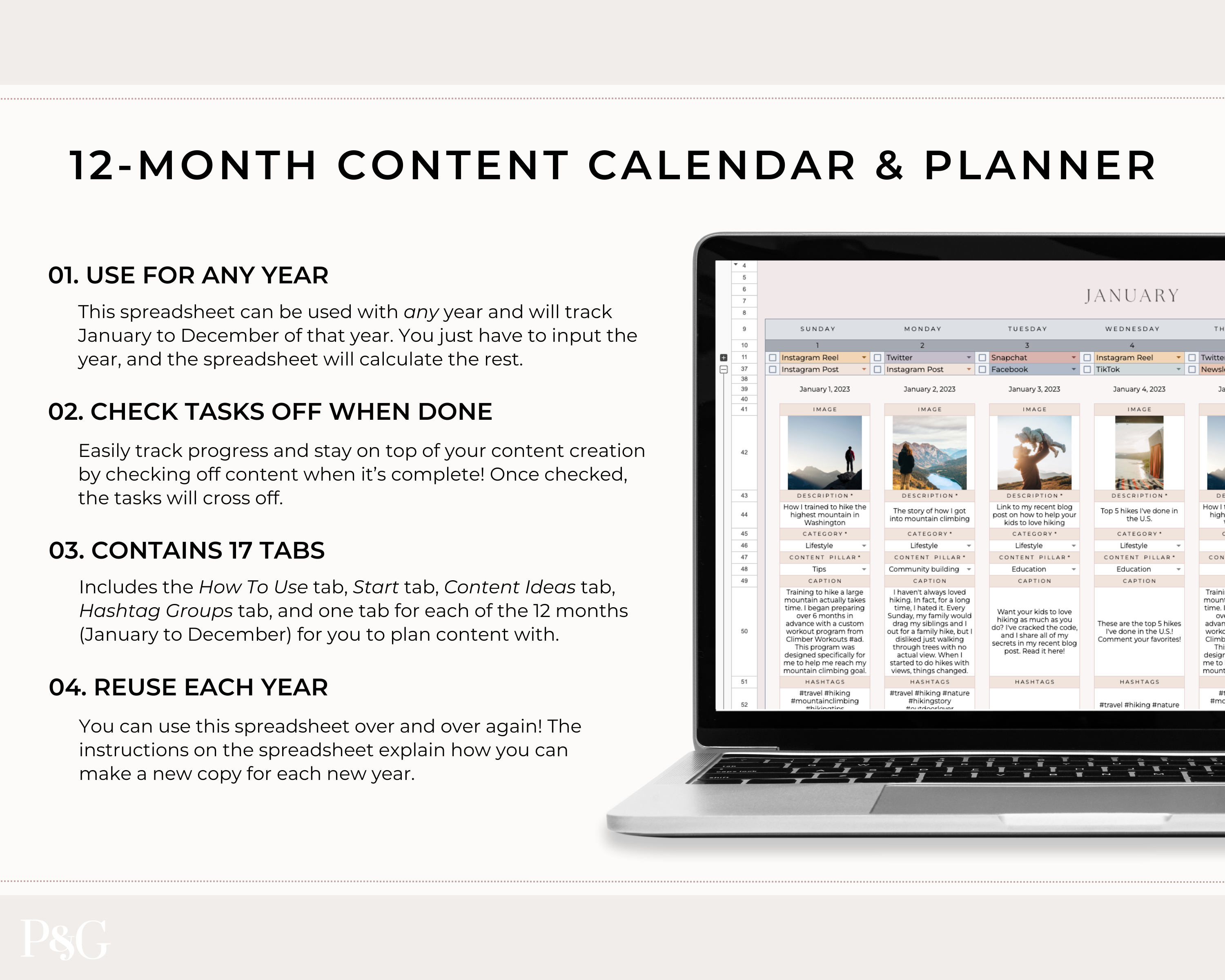 Cassie, Content CalendarThese spreadsheets are so well designed, organized, and easy to use! So happy with the purchase and will be buying more from here!
