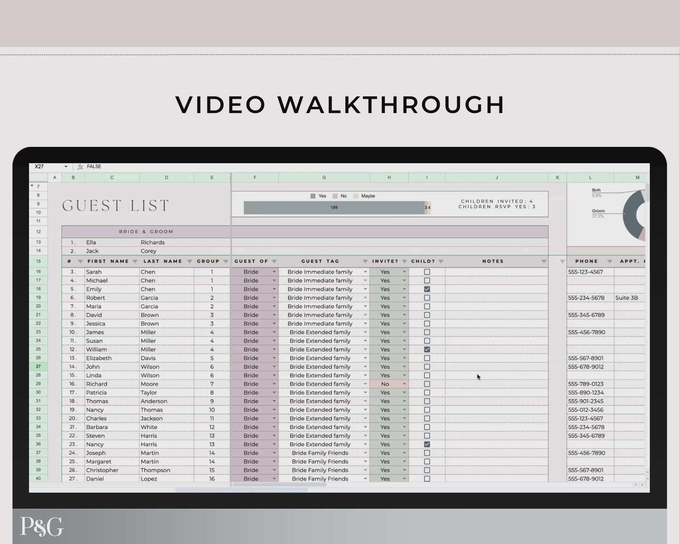 + Easily sort & filter to view guests by different criteria! This helps you use the spreadsheet with ease! (Covered more in our video tutorial)