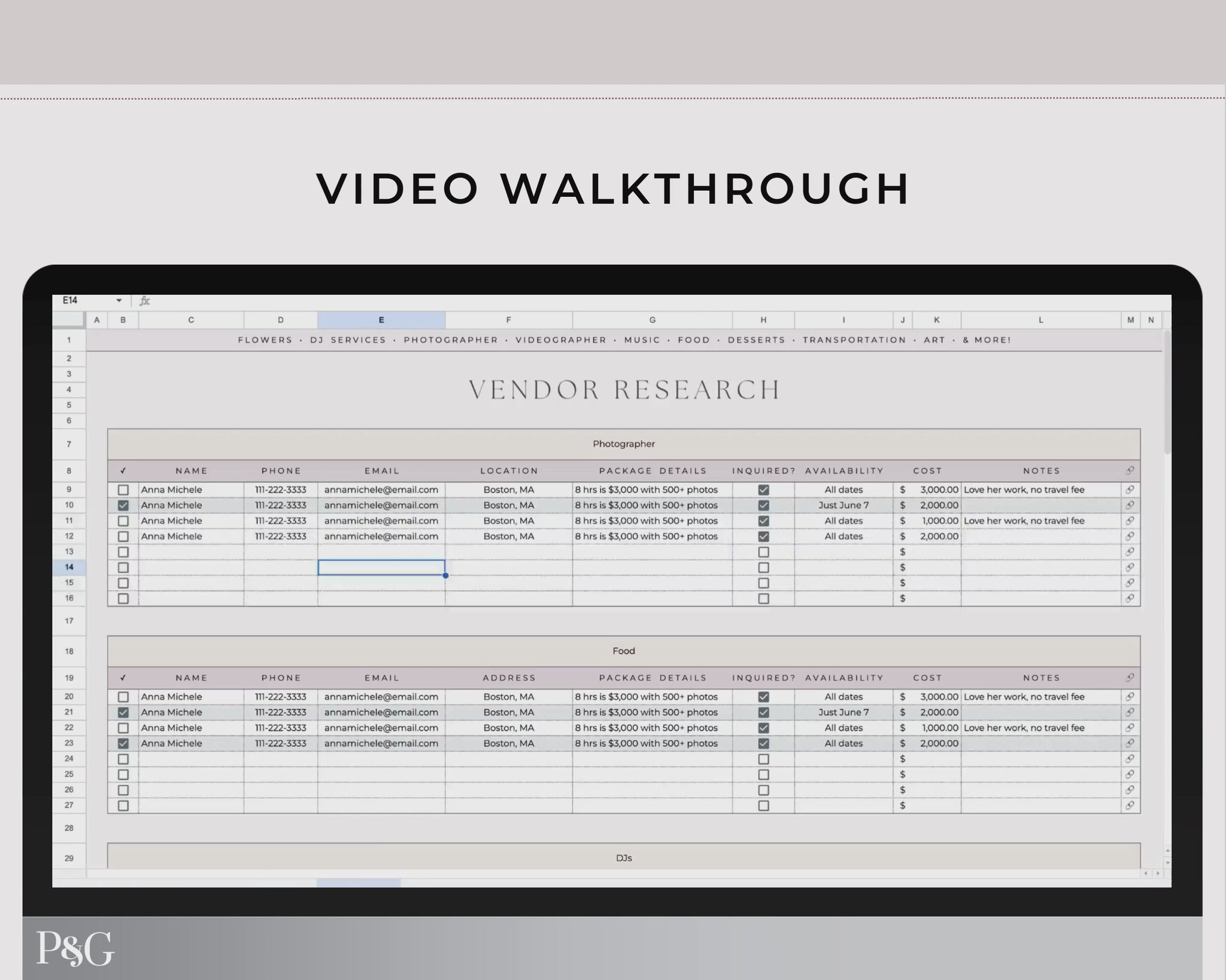 This detailed Google Sheets wedding venue and vendor template will help with your research, comparison, and planning! Record all of the essential information for your wedding vendors and venues so that you can compare them to one another and make the best decisions for your wedding!